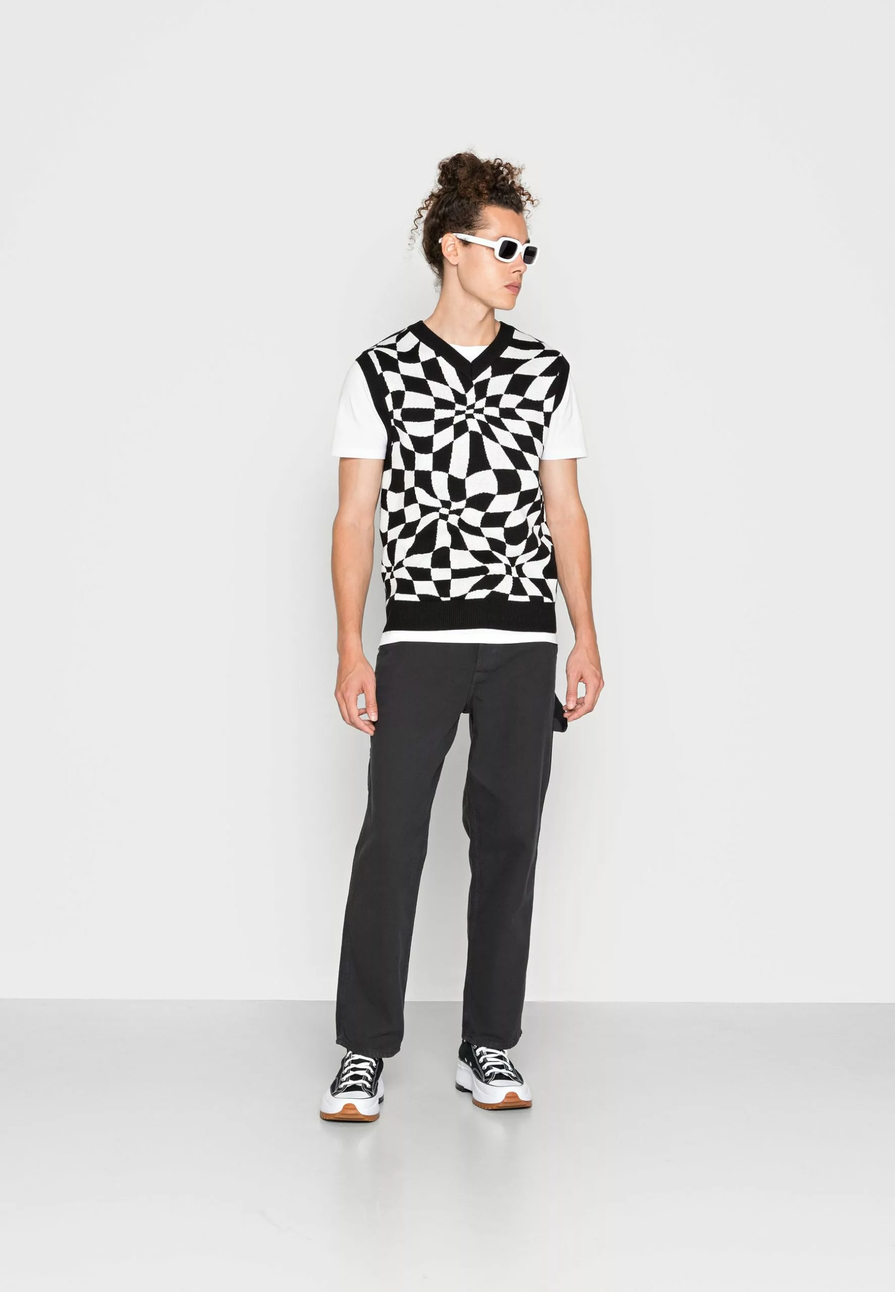 YOURTURN Distorted Check Vest Unisex – Trui – Black/White
